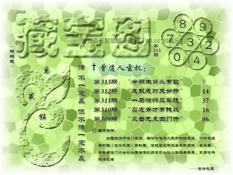 308期:九肖╠马猴蛇鸡猪狗羊龙鼠╣开:兔39